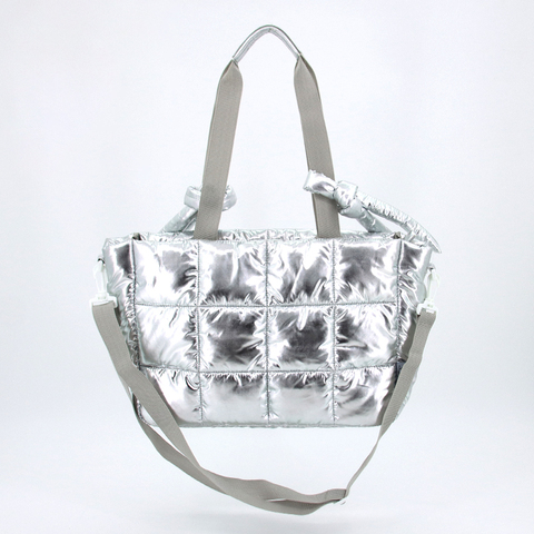 Custom Silver Tote Bag Waterproof Quilted Puffer Shoulder Bag Soft Winter Daily Tote Bags