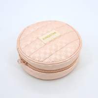 Quilted Round Waterproof Eco-Friendly Cosmetic Bag Fashionable Portable Makeup Pouch Zipper Closure