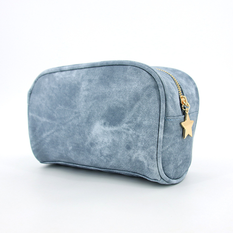 Custom Logo Rits Denim Look Oxford Stof Marineblauwe Reis Make Up Tassen Toilettas Make-Up Tas Make-Up Tas