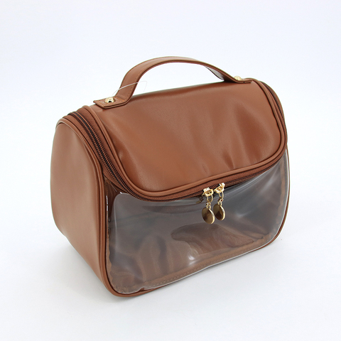Aangepaste Grote Capaciteit Pu Lederen Cosmetische Etui Reisorganizer Toilettas Draagbare Make-Up Tas Met Handvat