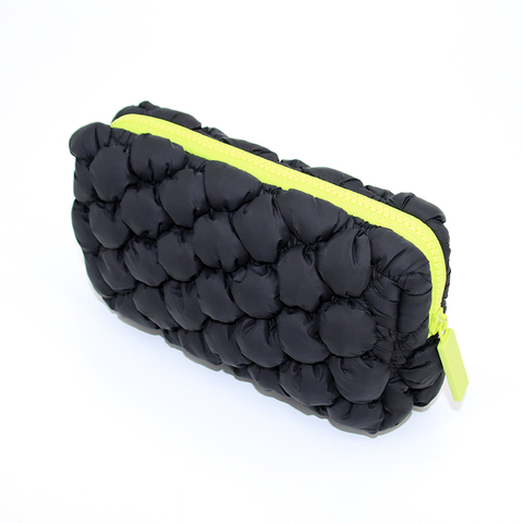 Custom Gezwollen Cosmetische Rits Zakje Zachte Winter Toilettas Polyester Puffer Make-Up Borstelzak