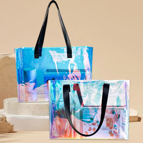 Borsa personalizzata in pvc trasparente impermeabile in pvc borsa per la spesa in plastica olografica trasparente in pvc da regalo